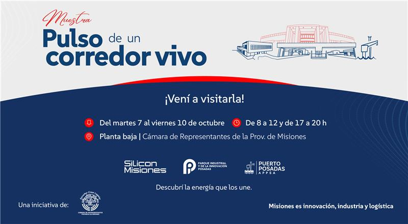 Del martes 7 al viernes 10 de octubre, la Cámara de Representantes de Misiones será sede de la muestra “Pulso de un corredor vivo”, un espacio que muestra la colaboración entre Silicon Misiones, el Parque Industrial y de Innovación Posadas (PIIP) y el Puerto de Posadas. La exposición busca acercar a estudiantes, legisladores y vecinos la forma en que estos espacios trabajan juntos para impulsar el desarrollo productivo y tecnológico de la provincia.